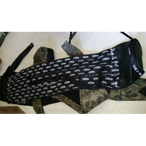 Putkikassi, jossa kolme pitkää vetoketjua. Kassin sisällä kolme tarranauhaa kiinnitystä varten sekä muutama väliseinä.